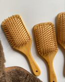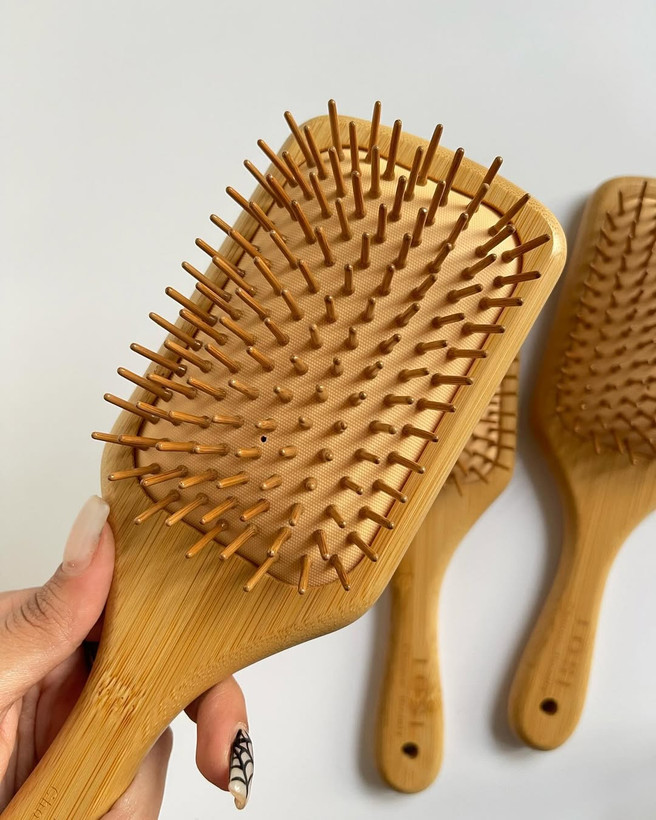 برس چوبی دستساز از چوب طبیعی و پرزهای نرم گیاهی — راهحلی سالم و زیبا برای مراقبت روزانه موها. طراحی ارگونومیک دسته، توزیع یکنواخت فشار روی پوست سر را ممکن میسازد و با تحریک ملایم فولیکولها به افزایش گردش خون کمک میکند؛ موها را براقتر و الکتریسیته ساکن را کاهش میدهد. مناسب تمام انواع مو، گرهها را بدون کشیدگی و شکنندگی باز میکند و برای استفاده روی موی خشک یا مرطوب عالی است. پرداخت ضدآب و سطح صیقلی چوب، مقاومت و طول عمر بالا را تضمین میکند — برای نگهداری کافیست گاهی با یک پارچه مرطوب تمیز و از خیساندن طولانیمدت خودداری کنید. محصولی سازگار با محیطزیست که جایگزینی پایدار و شیک برای برسهای پلاستیکی است.